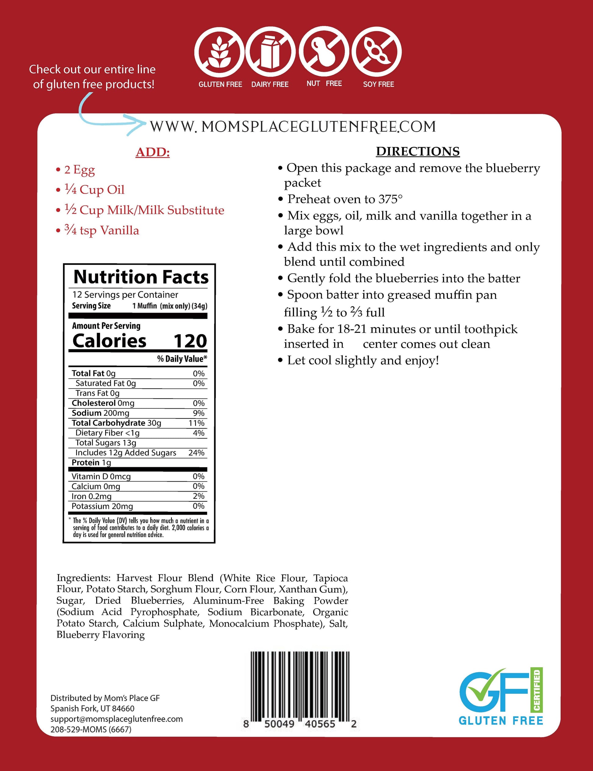 * GREAT TASTING: Enjoy Mom’s Place Gluten-Free Blueberry Muffin Mix fresh from the oven. Satisfy your sweet tooth without sacrificing taste or flavor.