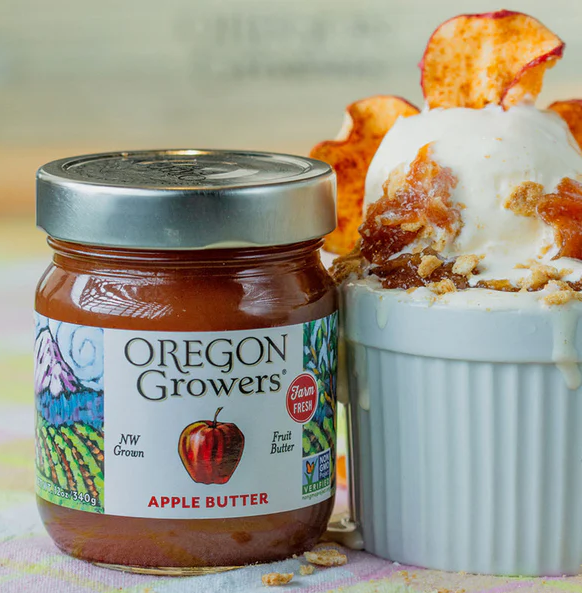 Our Apple Butter brings together Hood River Sonata apples with hints of sweet spices like cinnamon, nutmeg, and thyme for the perfect complement to orchard-fresh apples. Use on pancakes, waffles, or added to plain yogurt for a delicious and wholesome breakfast.