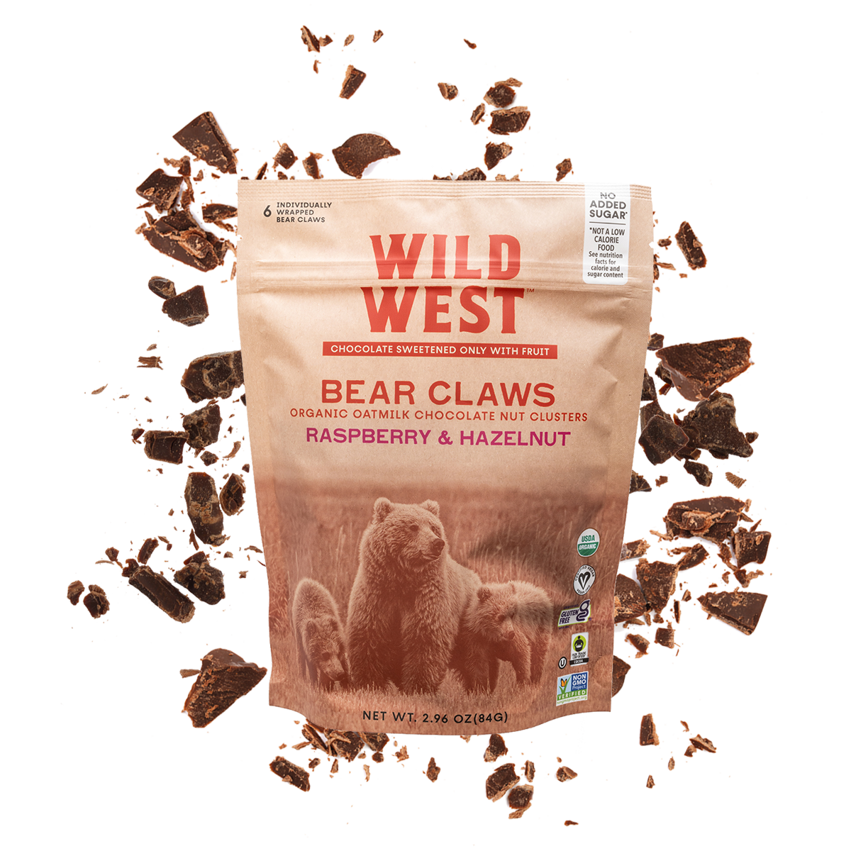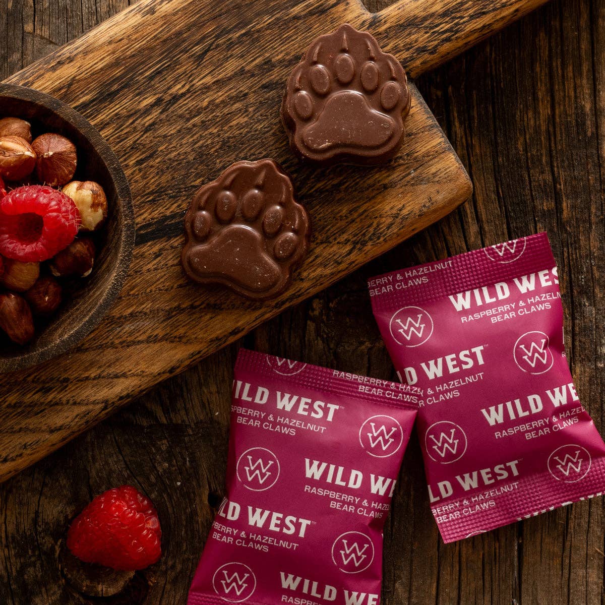 Sweetened only with fruit These bear claws will transport your senses to the pure, untouched corners of nature with a mouthwatering blend of creamy oatmilk chocolate, tart organic raspberries and crunchy hazelnuts. Go ahead—treat yourself.